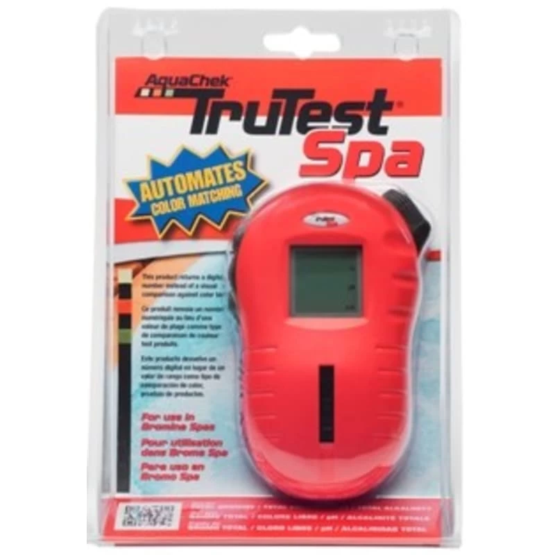 Tests for 3 important parameters in seconds: Total Bromine/Chlorine, pH, Total Alkalinity. Spend more time relaxing not guessing with AquaChek® TruTest Spa® automated color matching! Follow the instruction guide, dip a strip, place on the digital test strip reader, and it does the work for you–no color matching! Numerical results displayed along with “low”, “ok”, and “high” indicators.