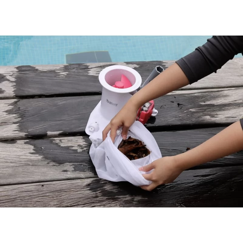 Perfect for leaf removal in your in-ground or aboveground pool. The BWT BC40 Leaf Vacuum comes with a lithium-ion rechargeable battery and powerful suction motor that sucks up leaves and debris into its oversized vacuum throat. Simply connect it to your standard sized pool pole, and dirt, leaves and debris are caught by the included mesh filter bag. Perfect for leaf season!