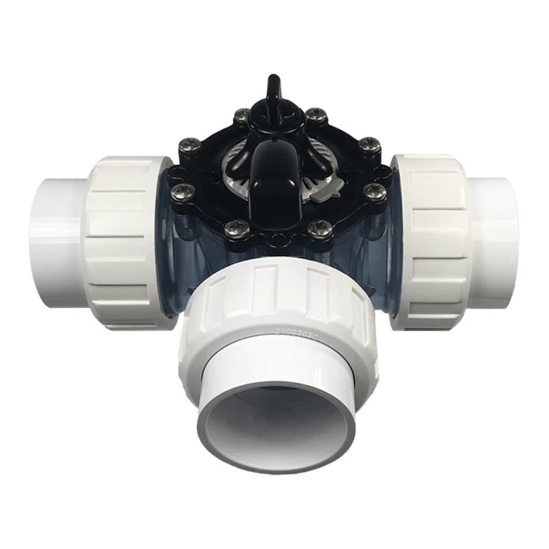 CMP 3-Way Diverter Valve, 2″ Clear PVC With Unions