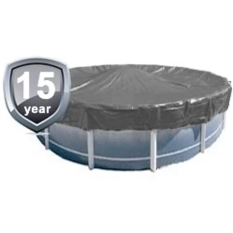 - Warranty: 15 Year PoolTux King solid winter cover for 21′ round above ground pool with 4′ overlap. 8 mil thickness; silver on black triple laminated polyethylene with heat sealed seams for added strength. Aluminum grommets spaced every three feet. Deluxe aluminum cable winch and vinyl coated steel lock-down cable included.