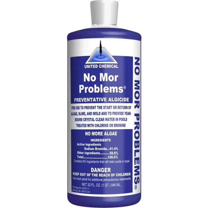 THE POOL MAN IN A BOTTLE! No Mor Problems® is the ultimate solution to providing a crystal clear problem free swimming pool all year long. Use: Algaecide; prevents all types of swimming pool algae and bacteria